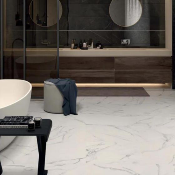 大理石瓷砖材质坚硬,使用中有许多优点,维护方便,其色彩质感自然,美观大方,可与多种家居装饰风格和谐搭配。